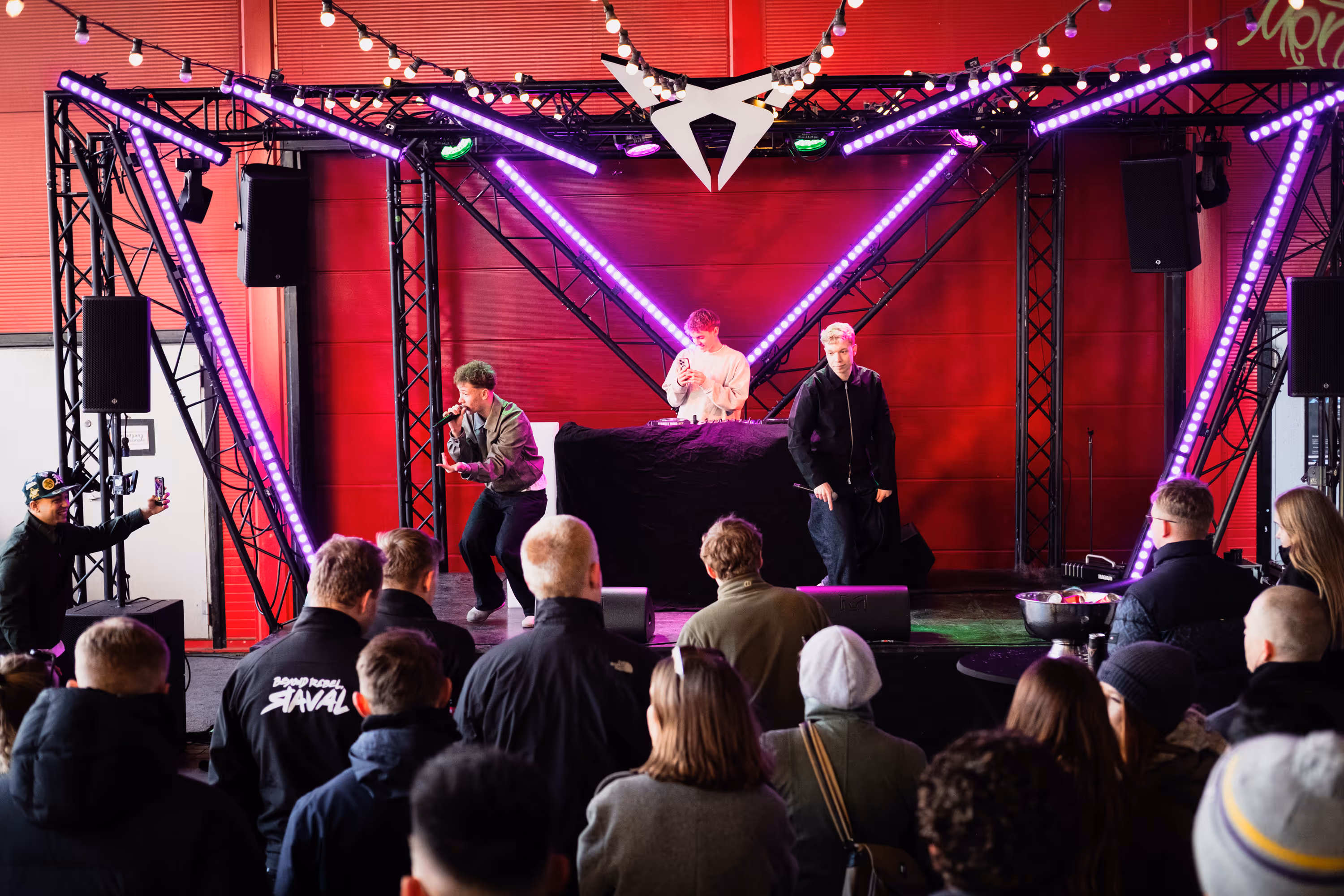 CUPRA Raval var dog ikke dagens eneste højtprofilerede gæst. CUPRAs danske ambassadør, streameren Rasmus Søndergaard, kiggede også forbi med deltagere fra musikkonkurrencen Chat Records, der spillede et par numre på scenen foran Urban13.